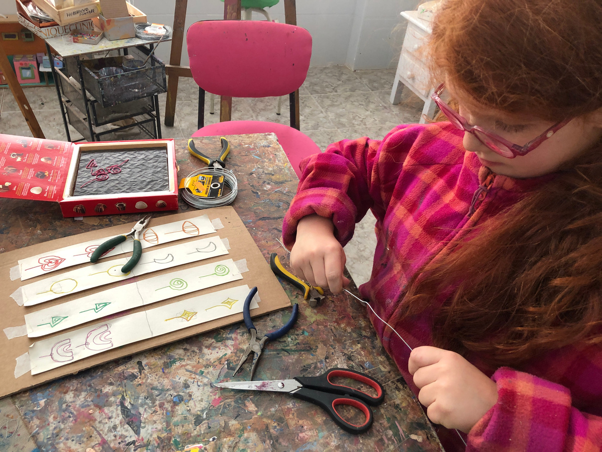 Actividades creativas cuyo objetivo es motivar a los pequeños en el afán de experimentar con un amplio registro de técnicas y materiales , acompañándoles e instruyéndoles desde la fase de proyecto hasta la de experimentación y creación.